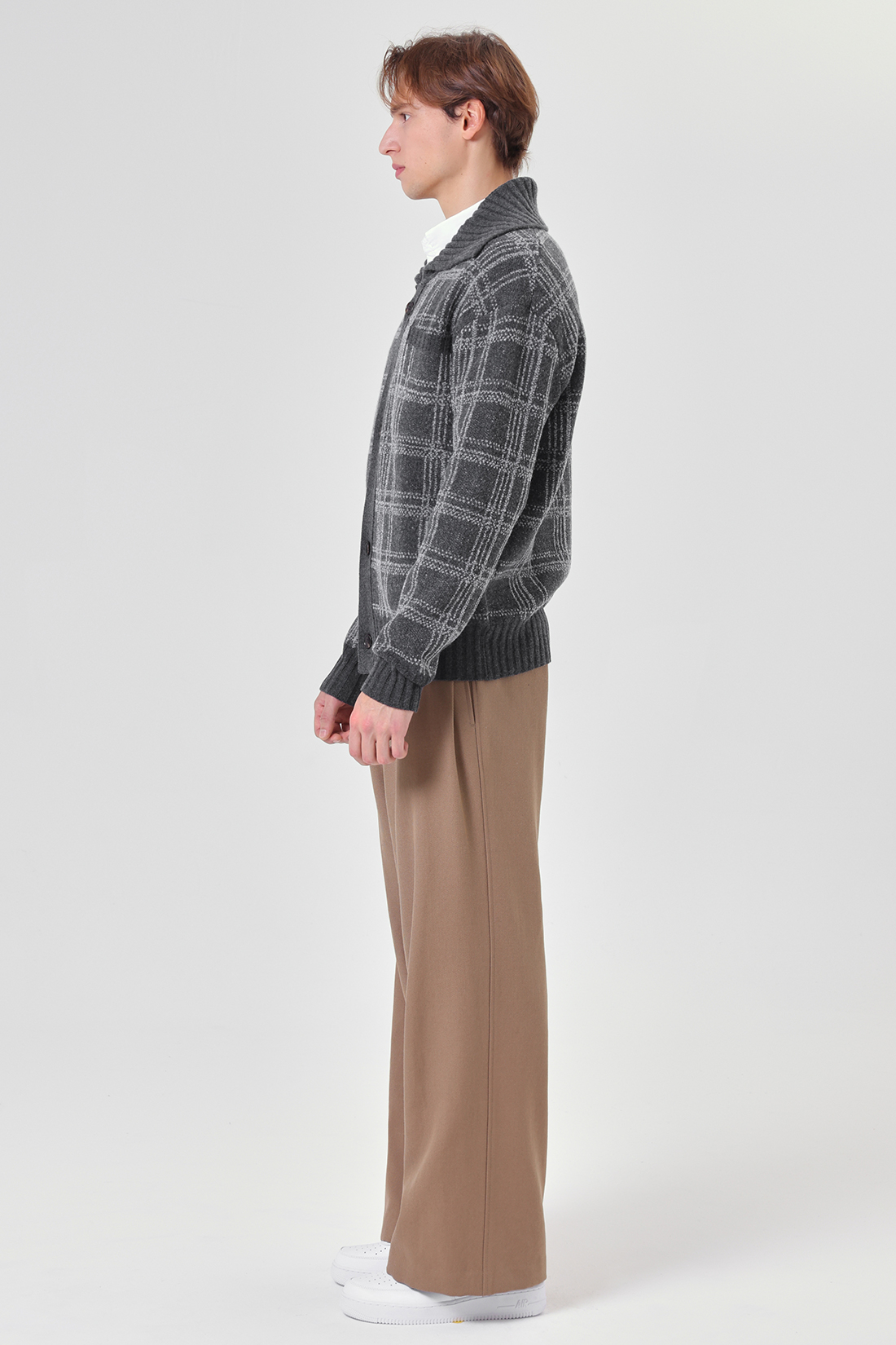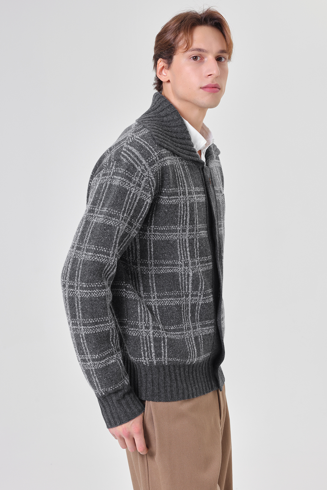 프리미엄 소재가 포인트인 타탄 체크 카라넥 부클 울 가디건