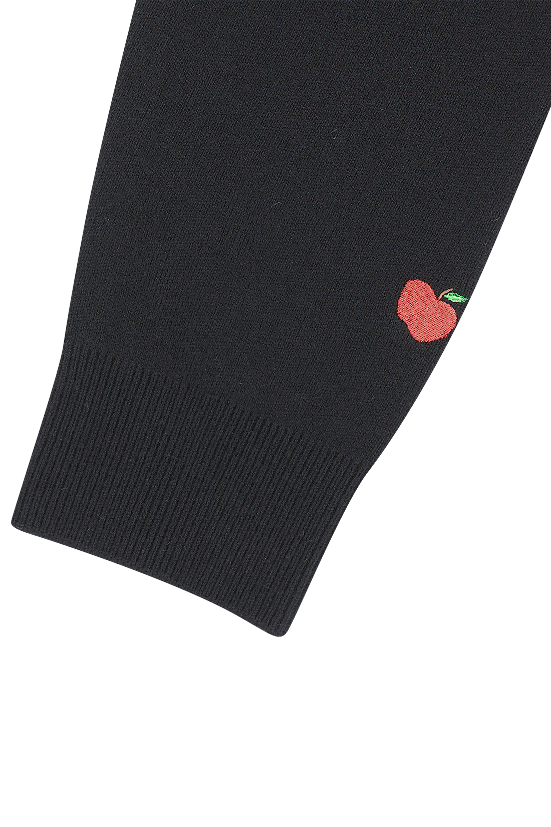 -슬리브단에 사과 자수를 더해 포인트를 준 니트