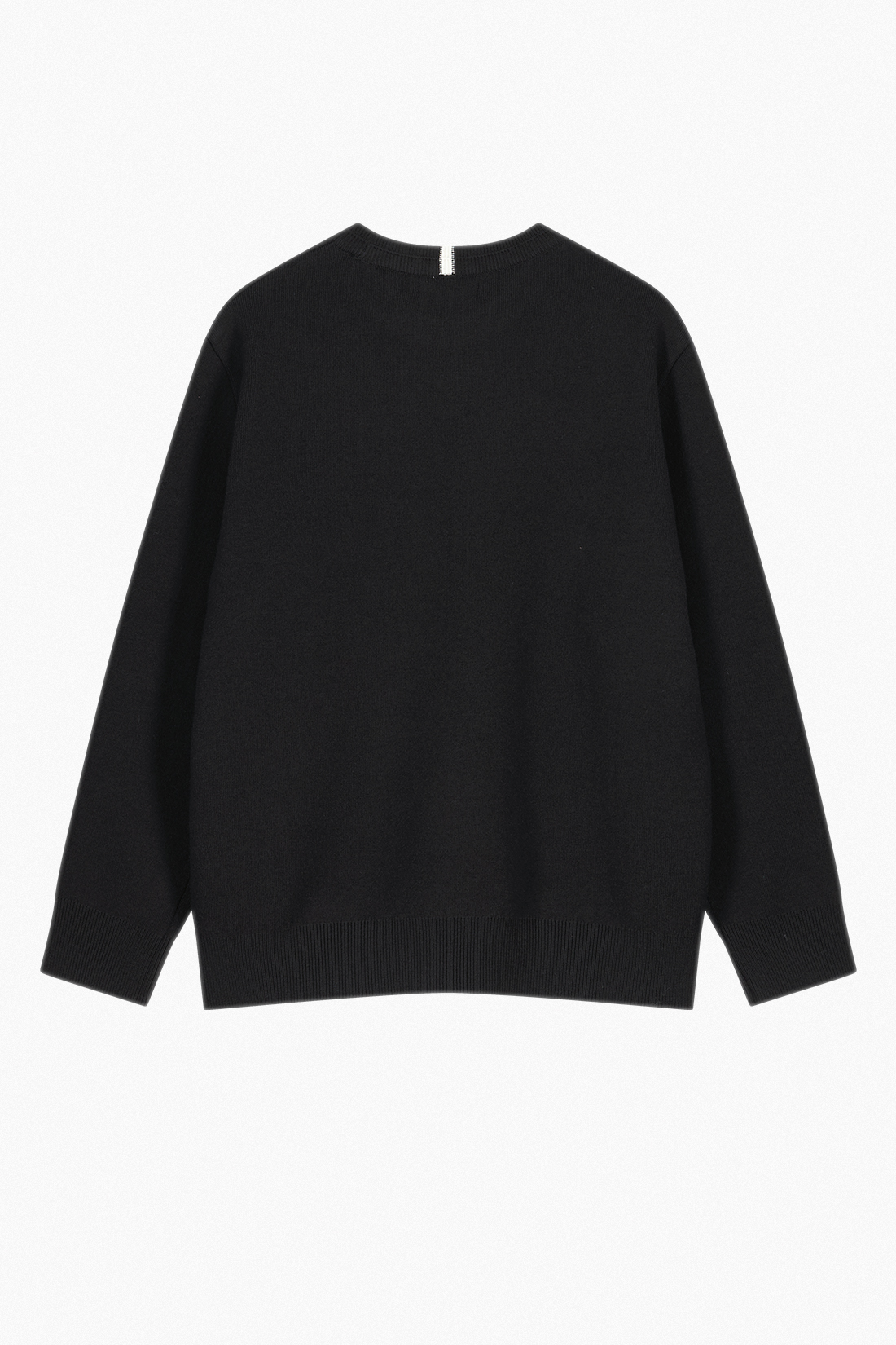 울 자수 라운드 니트는 사과 자수 아트웍이 포인트이며, 울 소재가 100% 함유되어