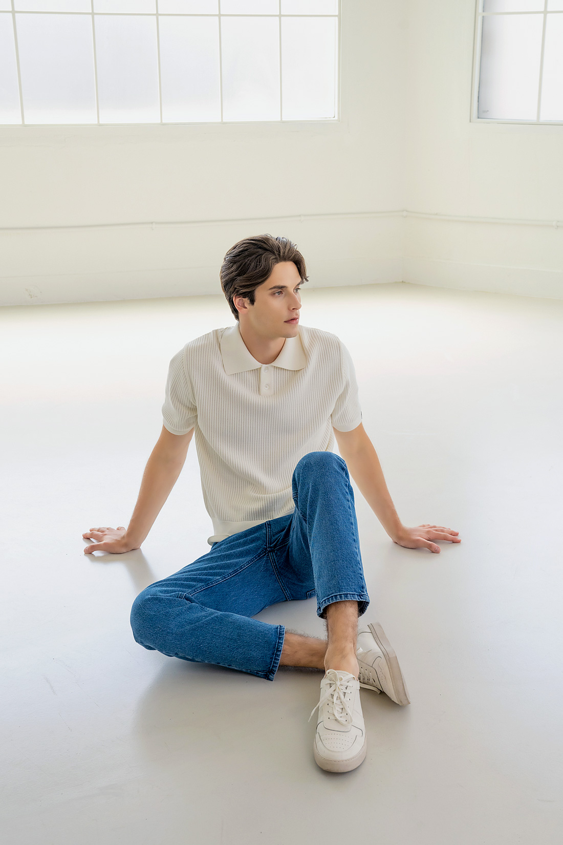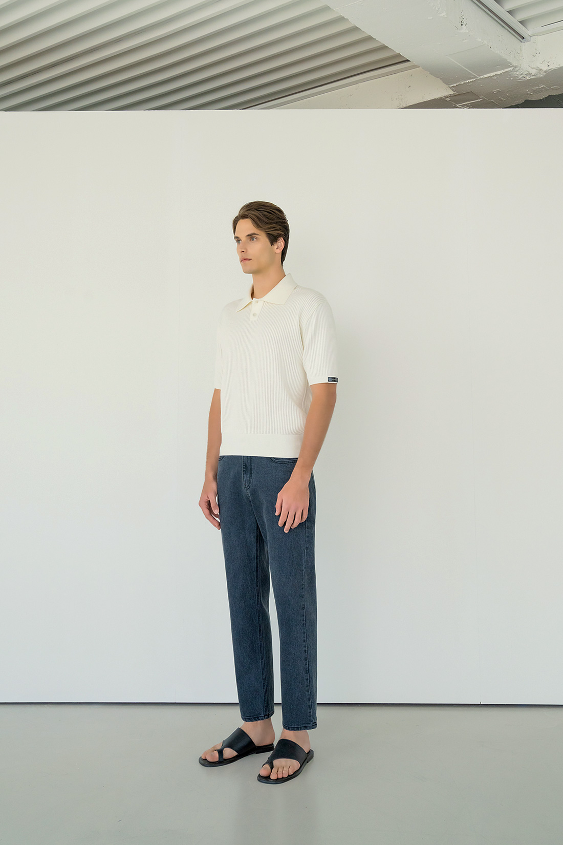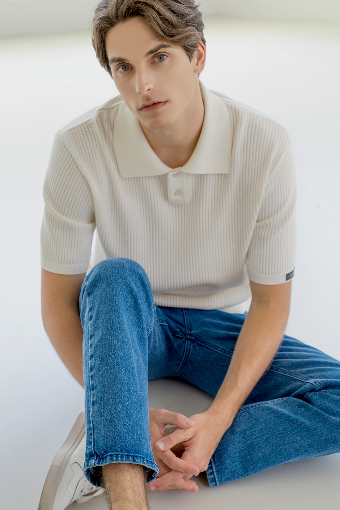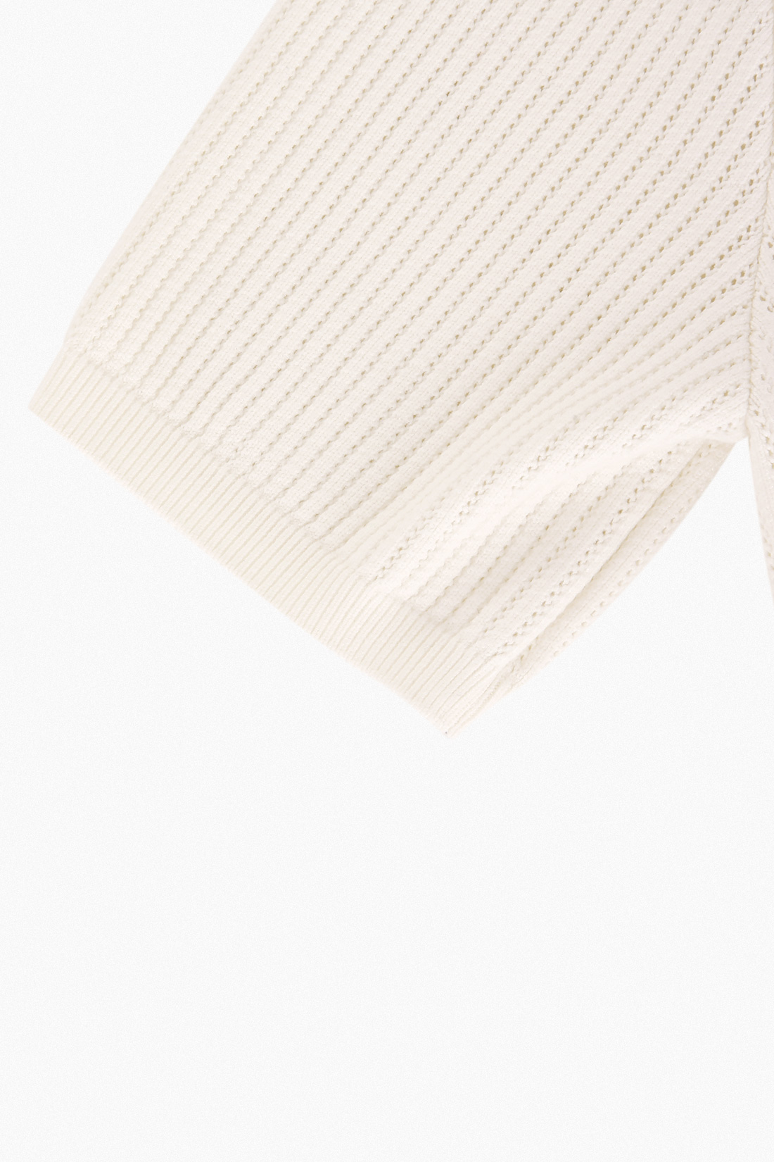 감각적인 와플짜임이 돋보이는 카라 넥 반팔 니트