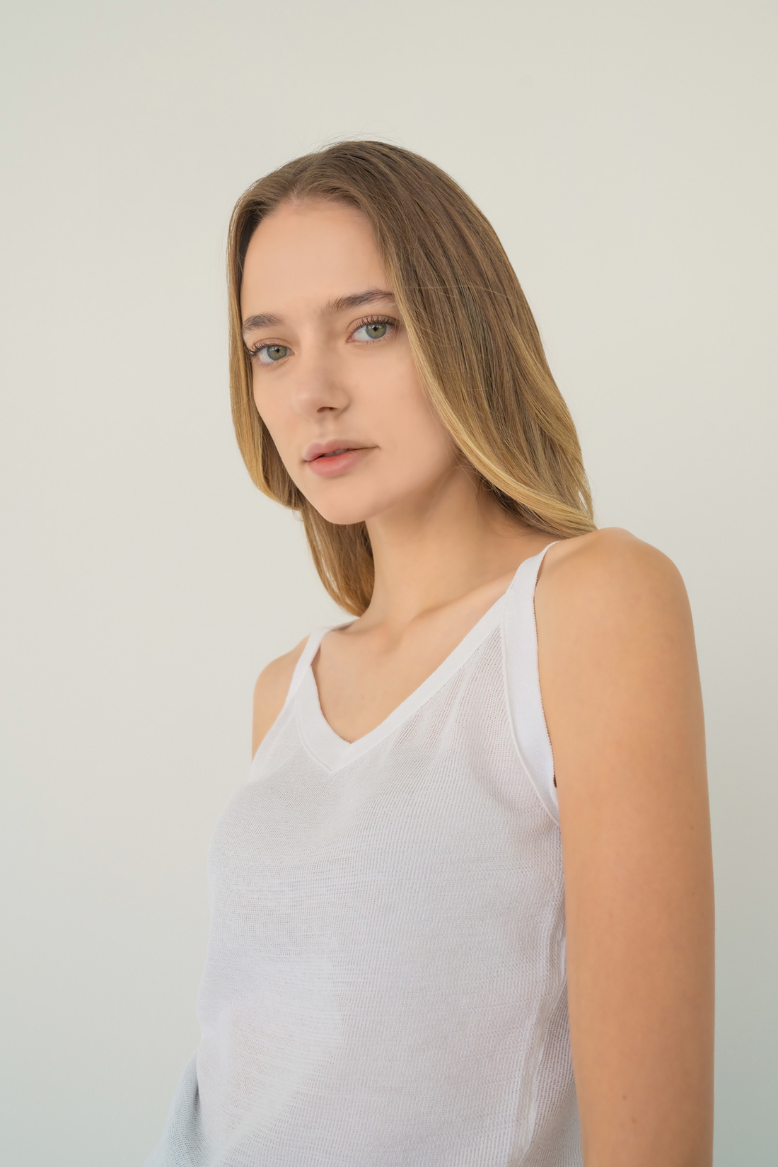 퓨어한 화이트 컬러감으로 시스루룩으로 연출하기 좋은 아이템입니다.