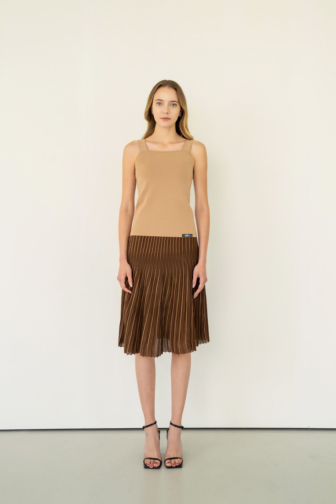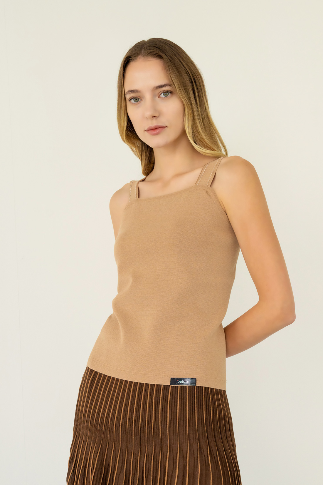 스퀘어 넥 디자인으로 유니크하고 부담 없이 착용하기 좋으며