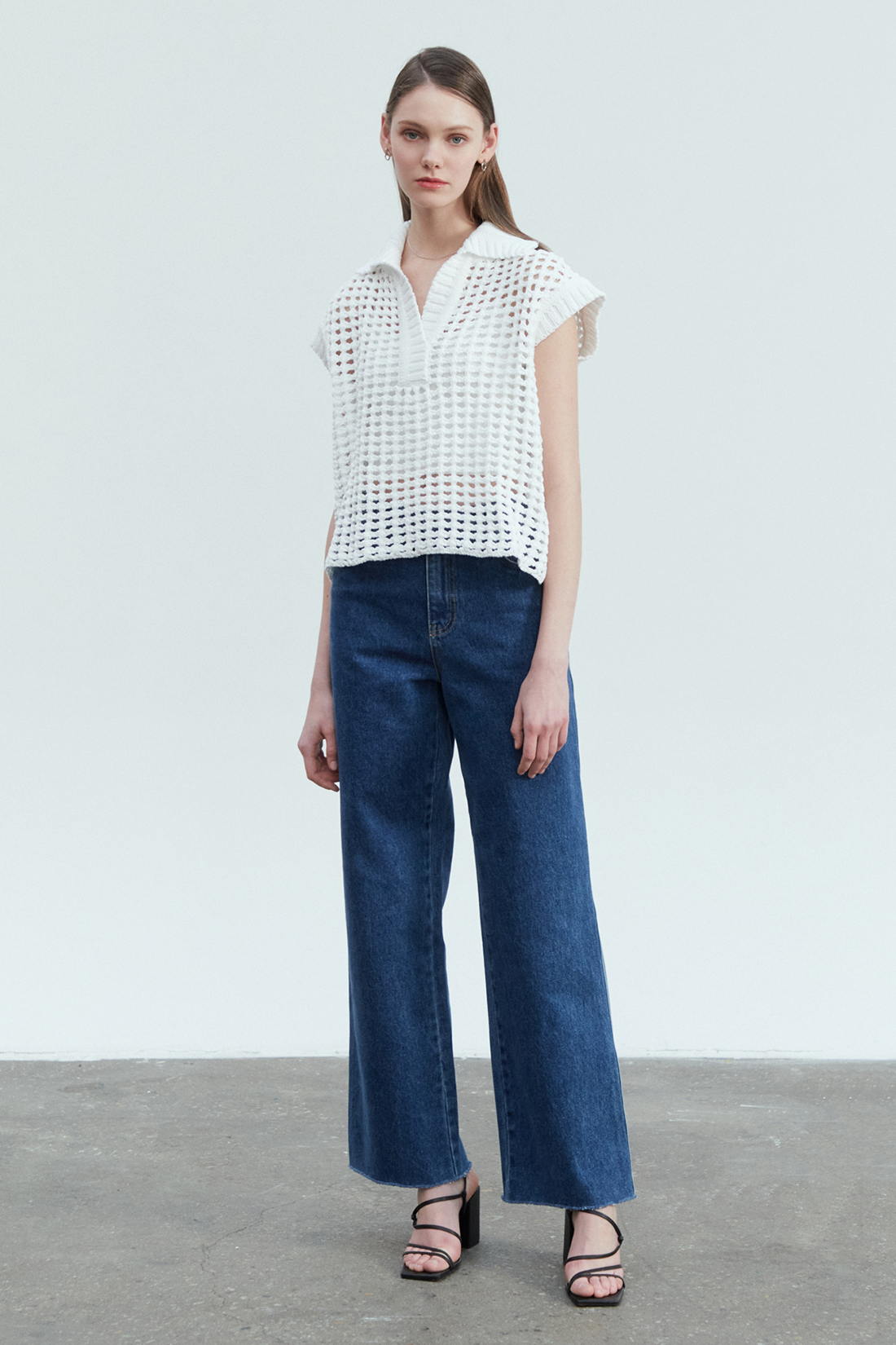 NAME : Mesh open collar neck knit vest