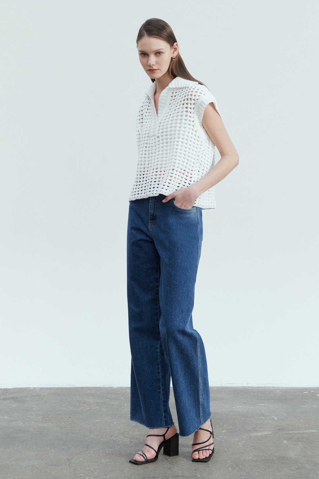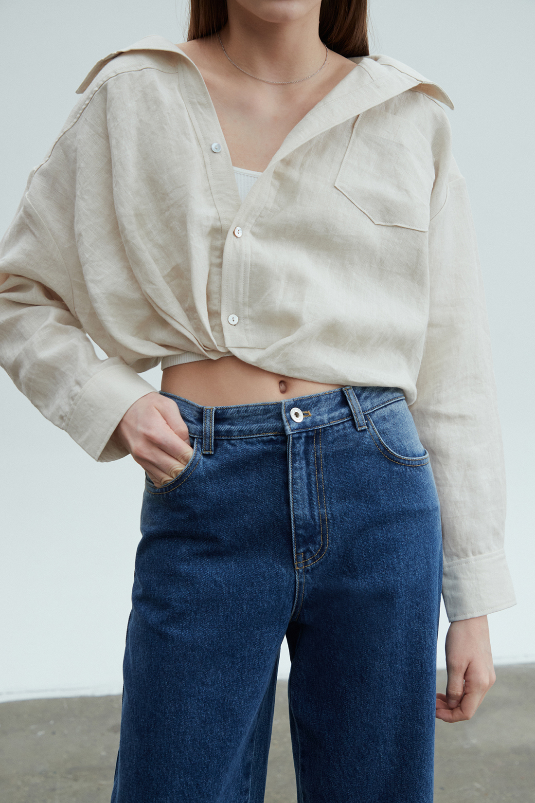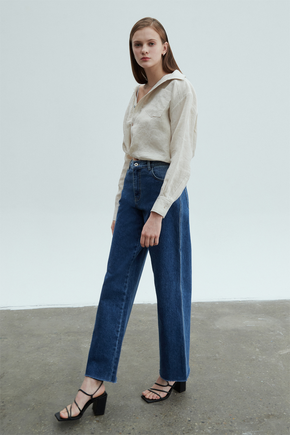 전체적으로 사이즈가 여유가 있는 스트레이트 핏의 데님 팬츠입니다.