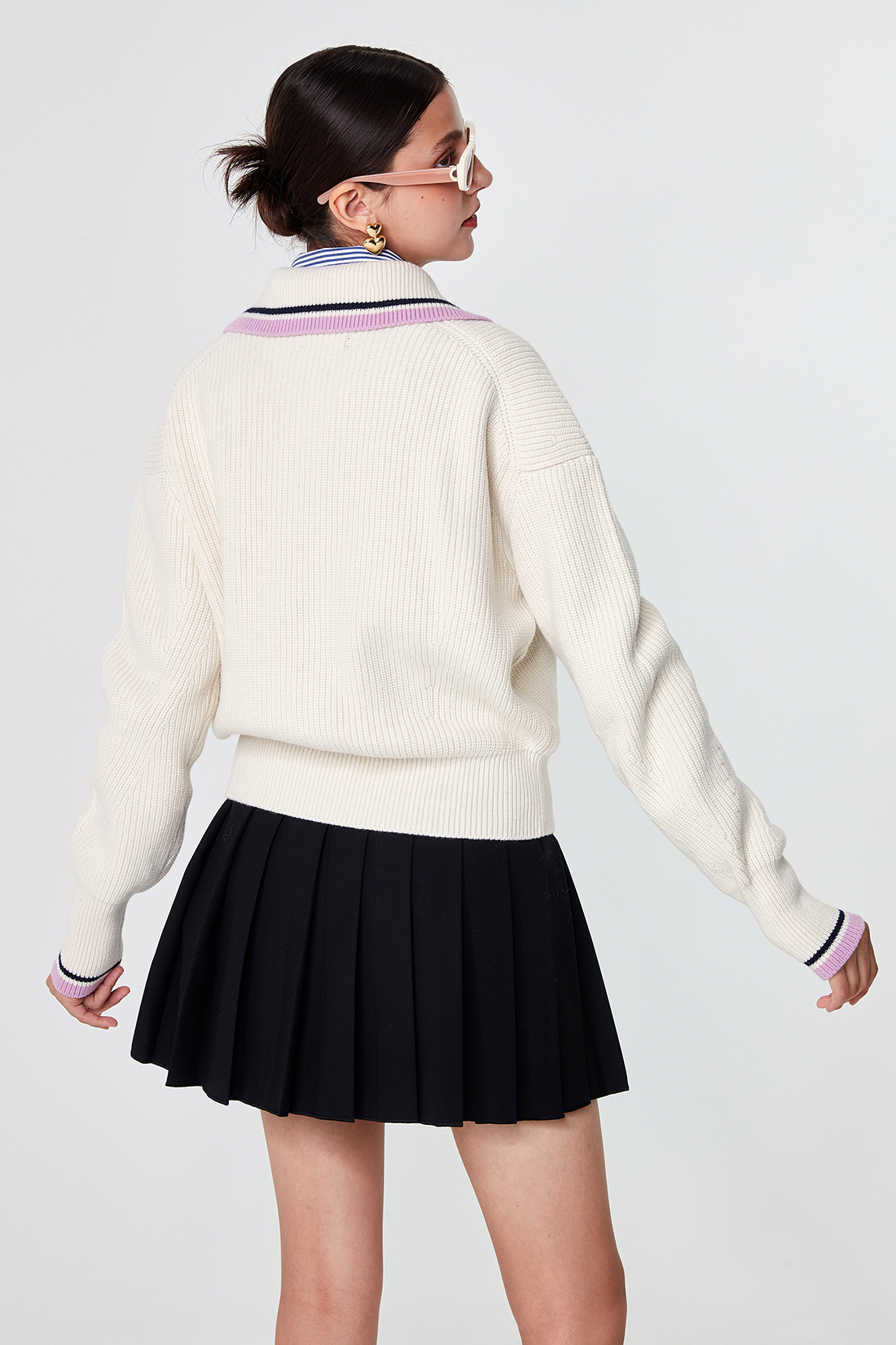 · 데일리한 메인 컬러에 카라 넥, 소매에 캐쥬얼무드의 배색 라인 디자인
