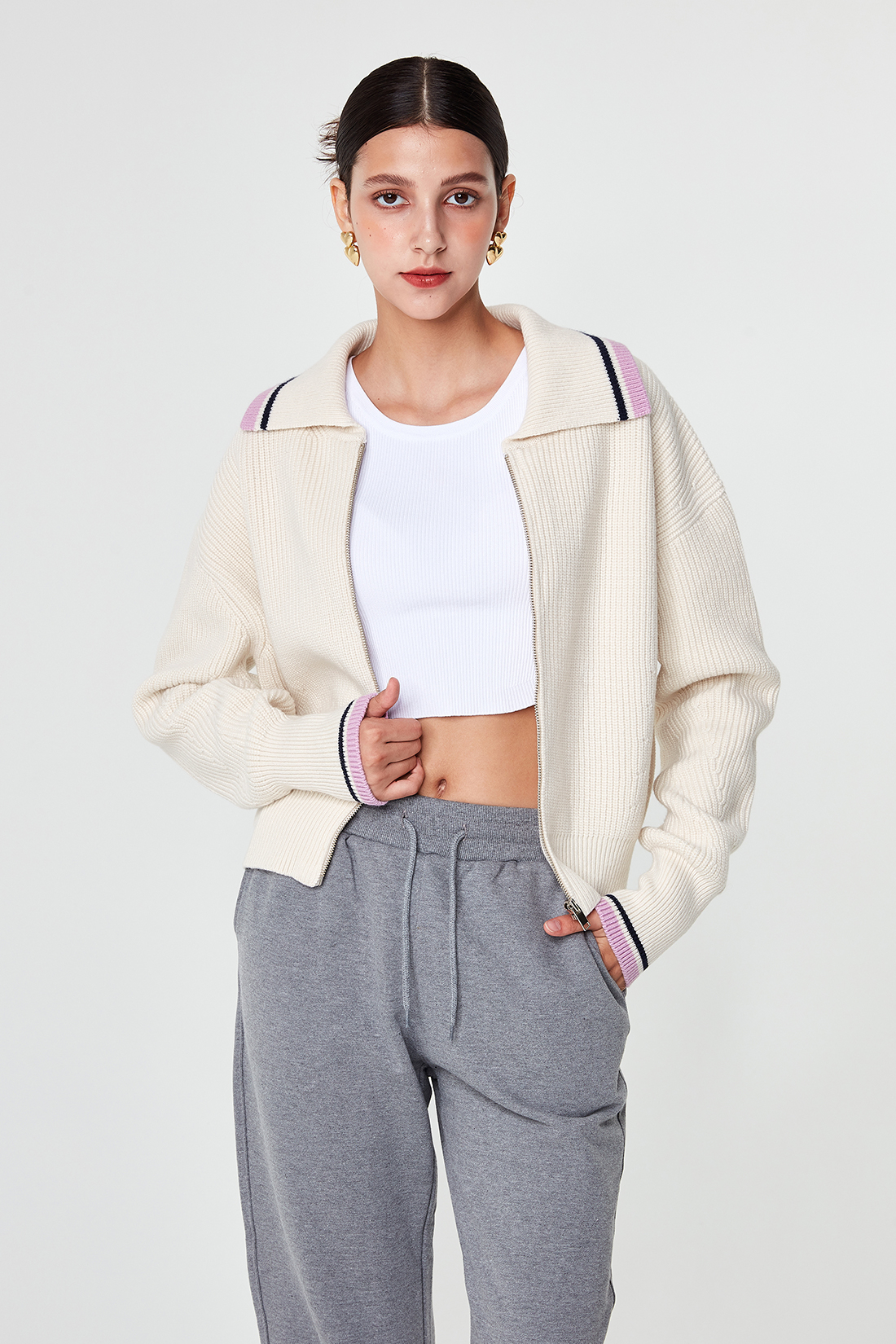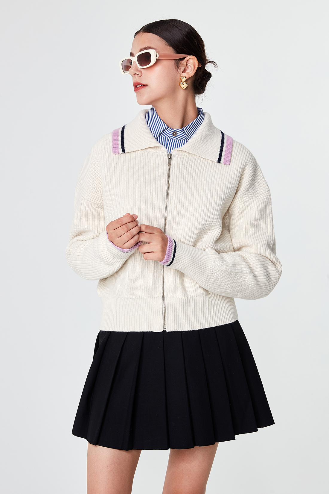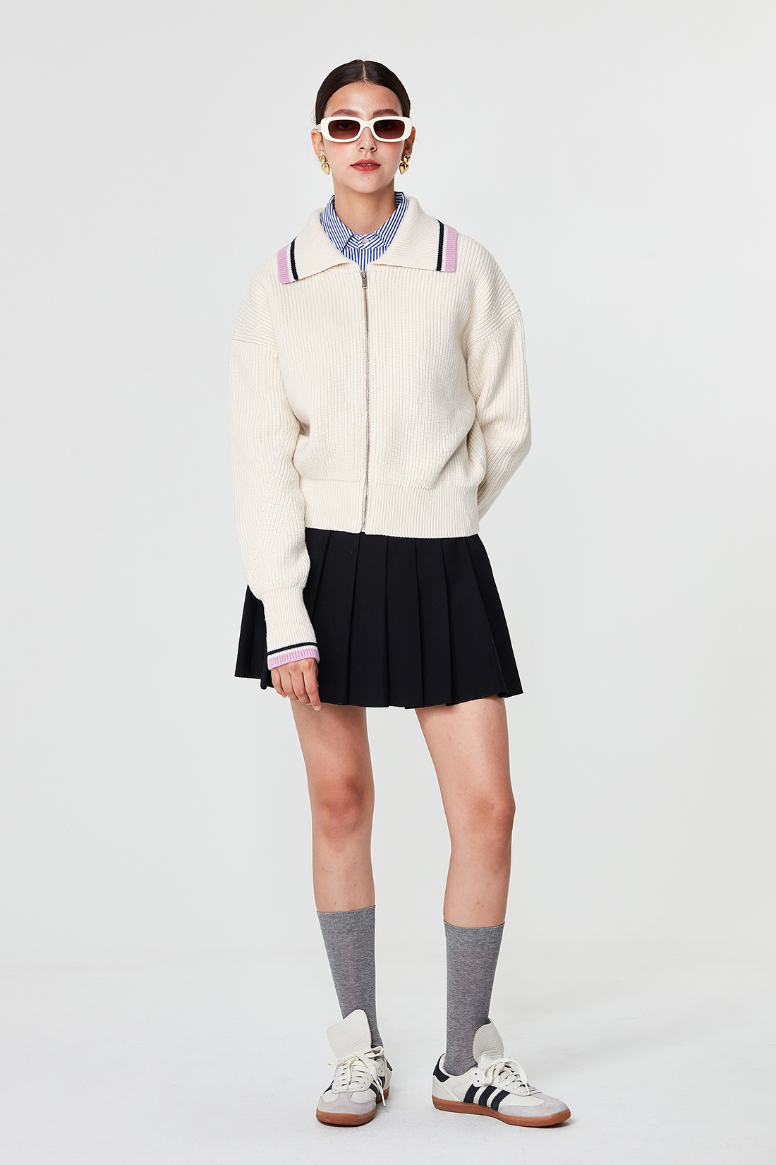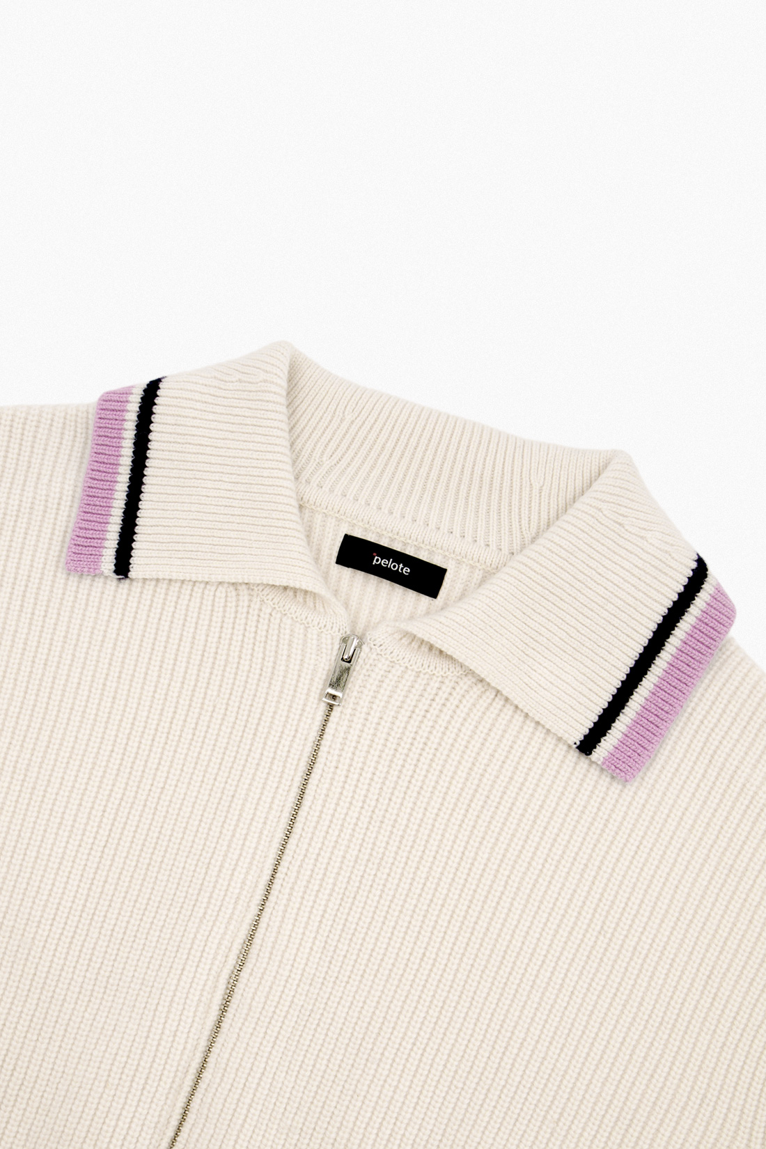 NAME : COLLAR NECK ZIP-UP TASMANIA WOOL CARDIGAN