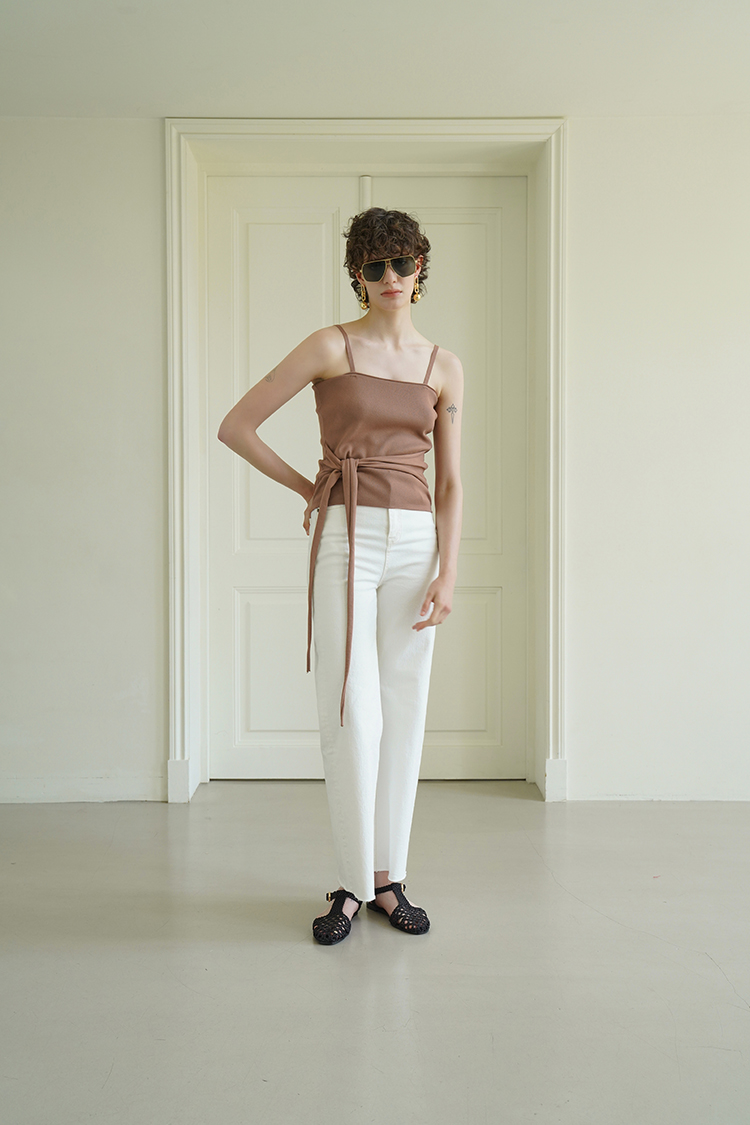 부드러운 터치감으로 편안하게 착용 가능한 나시 니트 탑