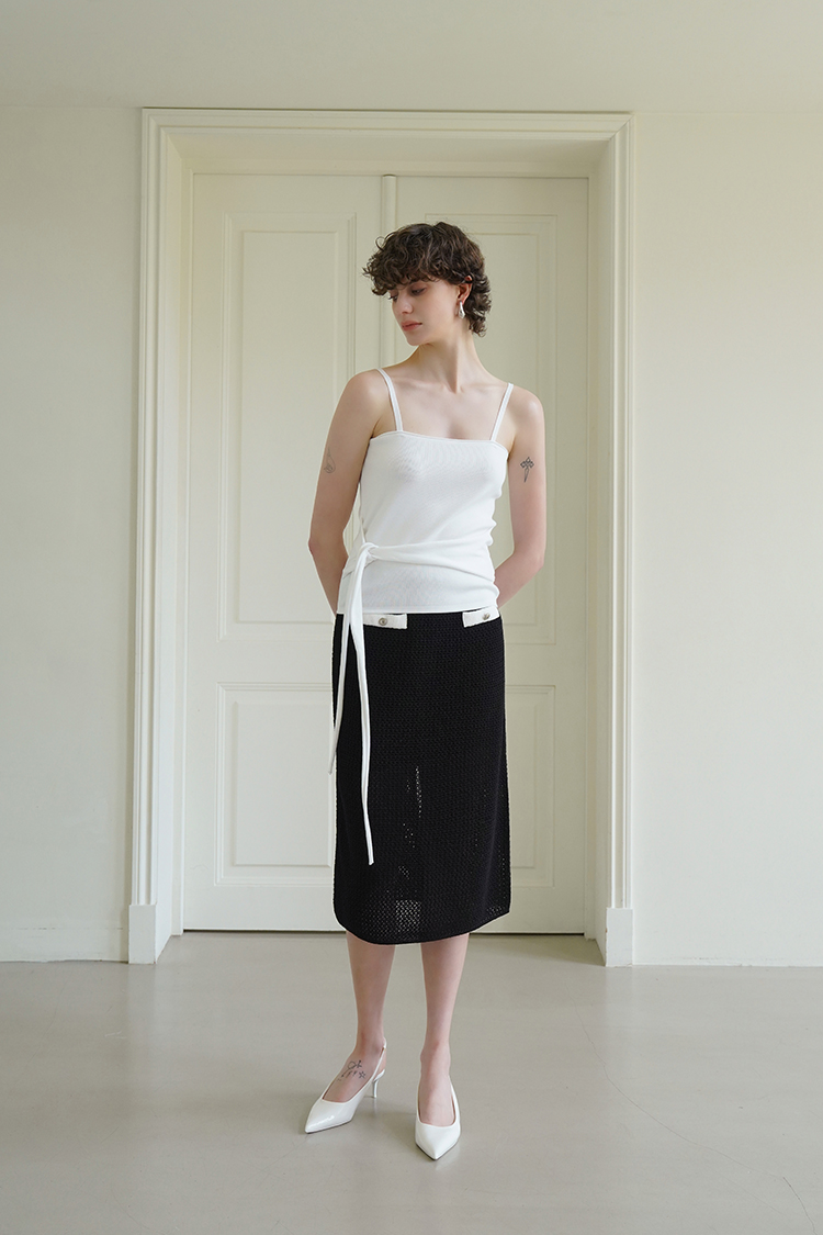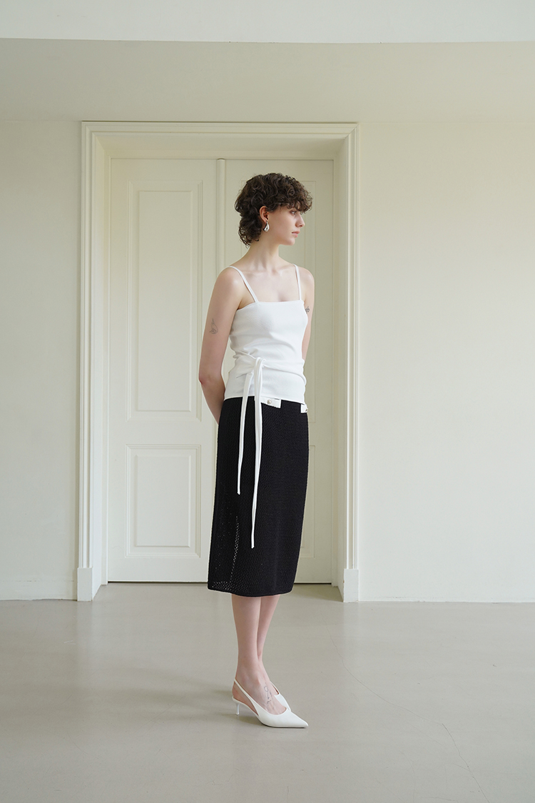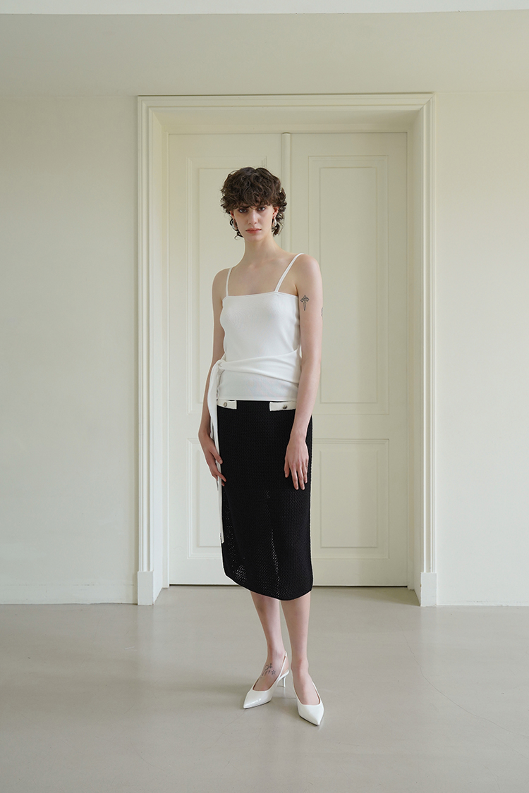 부드러운 터치감으로 편안하게 착용 가능한 나시 니트 탑