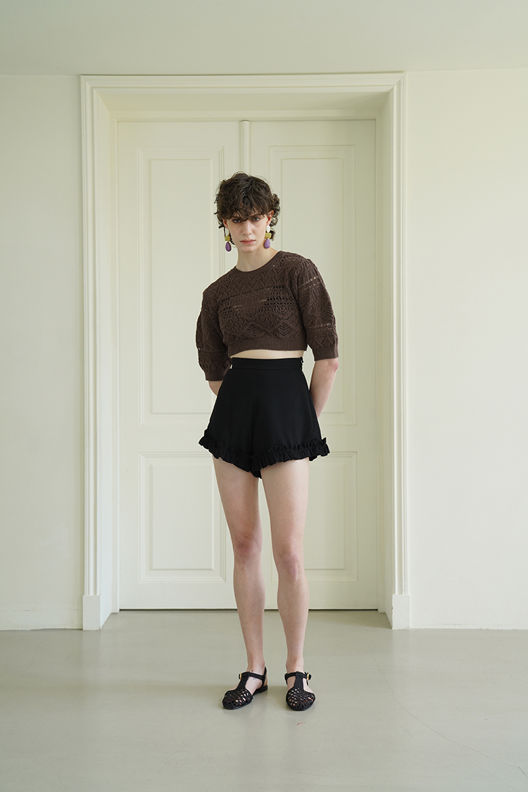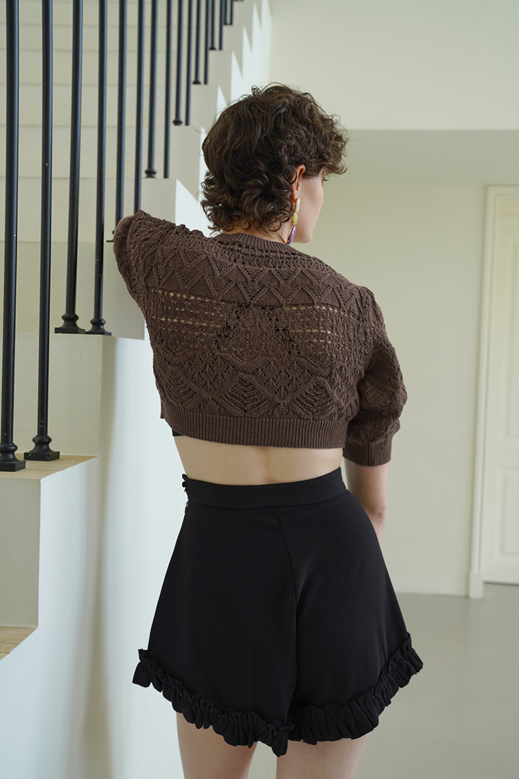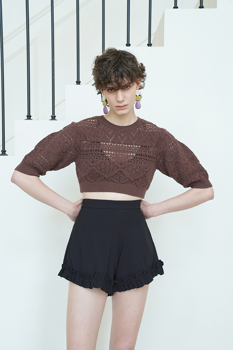 라운드넥에 크롭 기장감이 매력적인 레이스 펀칭 니트