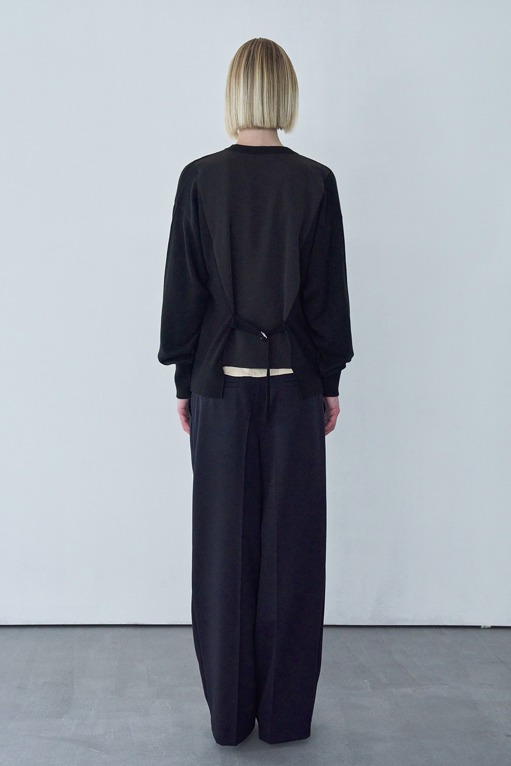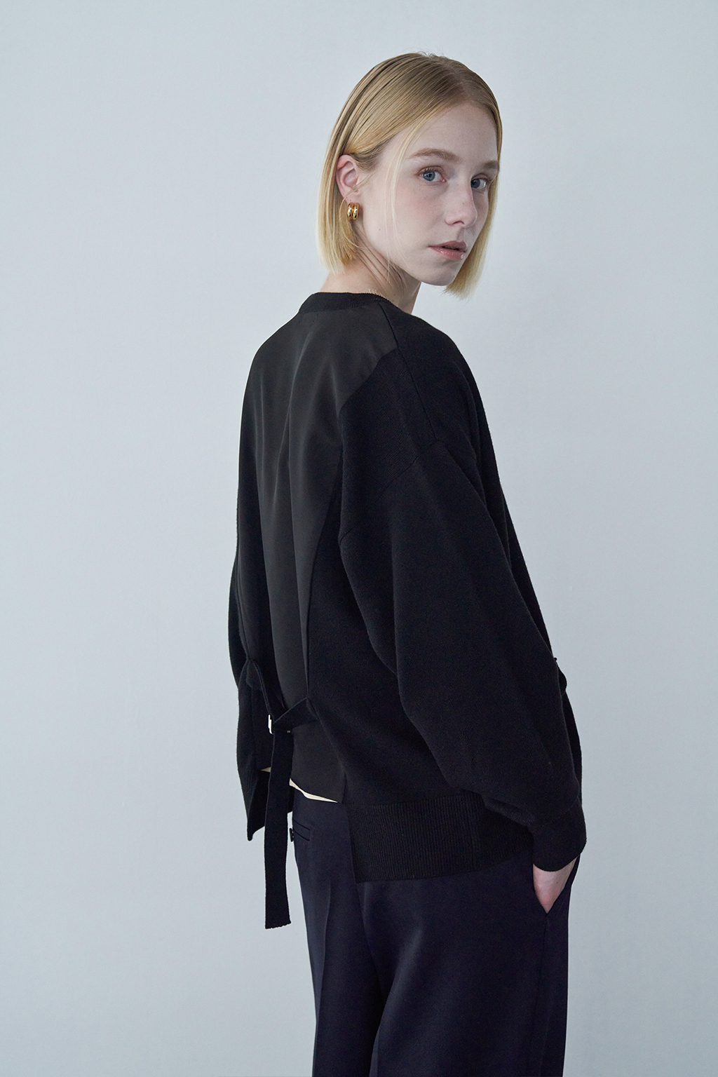 등판에 우븐 원단과 니트 벨트가 패치되어