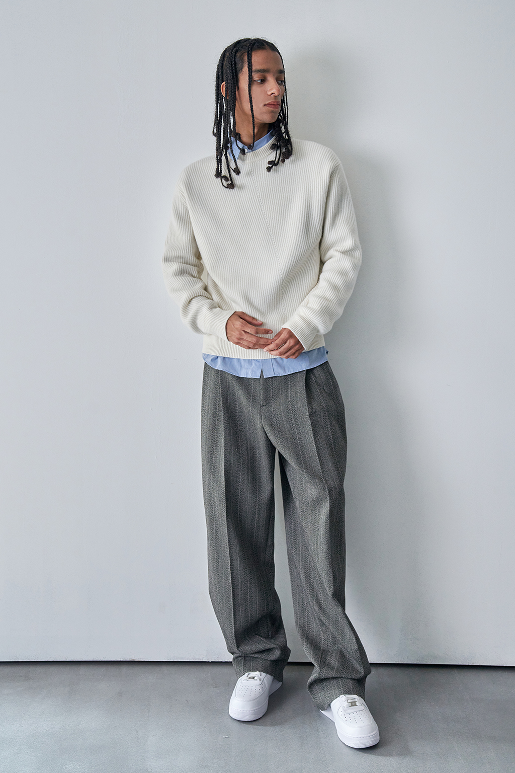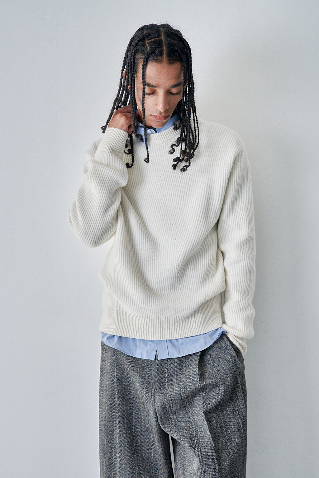 두께감이 있으며 포근한 니트 고유의 조직으로 편직한
