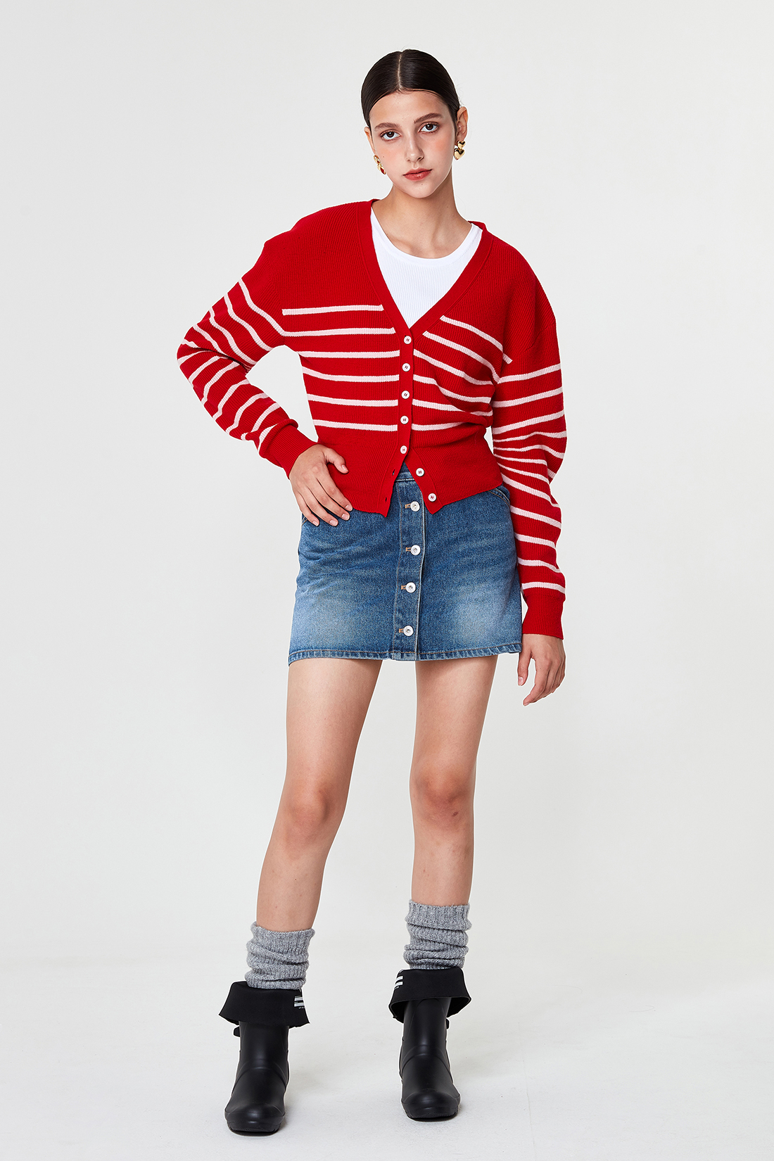 트렌디한 버튼업 클로징이 돋보이는 슬릿 버튼 데님 스커트입니다.